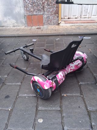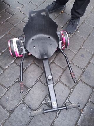 Se vende hoverboard negro con accesorio de kart. - Hoverboard con luces. - Asiento de kart ajustable. - Cargador original incluido. Funciona perfectamente.