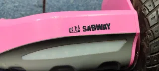 Hoverboard de color rosa con el logo de SABWAY,incluye funda - Diseño moderno. - Ruedas formato grande - Luces LED integradas. Conexion bluethoo La batería dura poco