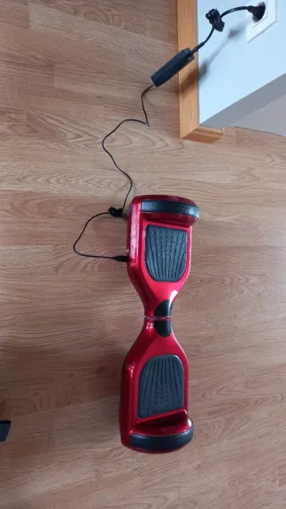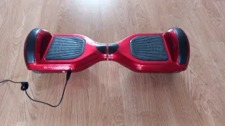 Hoverboard de color rojo brillante, con detalles en negro y luces LED decorativas en los laterales. - Diseño moderno y llamativo. - Luces LED integradas. - conexión bluetooth para conectarlo al movil y escuchar música mientras se usa - se vendr por no usar . Su precio nuevo fueron de 285€ - El objeto de la imagen es un hoverboard o patinete eléctrico inteligente de color rojo, comúnmente utilizado para transporte personal urbano. Velocidad máxima: Generalmente oscila entre 10 y 15 km/h. Autonomía: La batería suele durar entre 8 y 15 kilómetros por carga, dependiendo del terreno y el peso - 700 watios