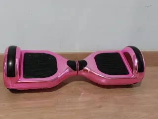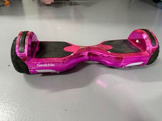 Hoverboard de la marca Geekme en color rosa brillante. Ideal para desplazarse de forma divertida. - Diseño llamativo y moderno. - Luces leds - Plataformas antideslizantes para mayor seguridad. Bastante usado pero funciona perfectamente. Alcanza 25km/h. Altavoz Bluetooth Necesita cambio de ruedas. Se entrega con su cargador