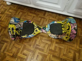 Hoverboard con un llamativo diseño de graffiti multicolor. Perfecto para desplazarse de forma divertida. - Ruedas con luces LED. - Base antideslizante. Está como nuevo no ha tenido ningún uso en la calle ni nada por el estilo.