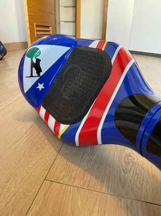 Hoverboard personalizado con muy poco uso. Ideal para desplazamientos divertidos con bluetooth para poner la musica que querais , el patienete es bastante bonito y las luces cambian de color . - Diseño único y llamativo. - Luces LED azules. - Indicador de batería verde.