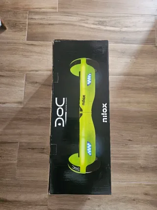 Hoverboard Nilox DOC en color verde brillante. Solo se ha abierto para probar su funcionamiento. - Diseño moderno y llamativo. - Ruedas con luces LED azules.