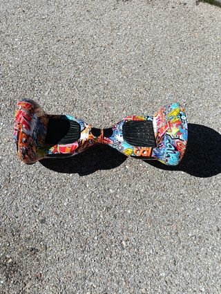 Se vende hoverboard en buen estado. Es un modelo con un diseño colorido y llamativo, en el que se pueden apreciar payasos entre otros dibujos. - Perfecto para principiantes. - Diseño colorido y divertido. - Ruedas resistentes. - Silla Incluida.