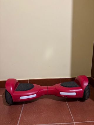 Hoverboard rojo en buen estado y funcionando correctamente. Tiene buen equilibrio, es fácil de usar y alcanza buena velocidad. La batería carga bien y ofrece una autonomía suficiente para trayectos cortos. Carcasa con signos normales de uso, pero nada que afecte al funcionamiento. Ideal para niños, adolescentes o para moverte de forma divertida.