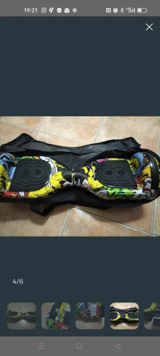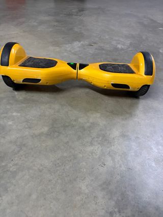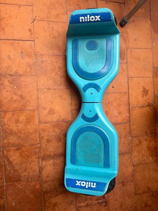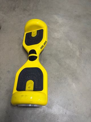 Hoverboard de color amarillo brillante con detalles en negro. Ideal para desplazarse de forma divertida. - Diseño moderno y llamativo. - Plataformas antideslizantes para mayor seguridad. - Marca: Nilox. -funciona PERO TIENE UNA TARA , por lo que sea no te puedes subir encima porque no queda derecho , esta inclinado y cuando lo pones derecho , echa a correr , pero puede servir para reparar o para piezas , esta perfecto y con cargador