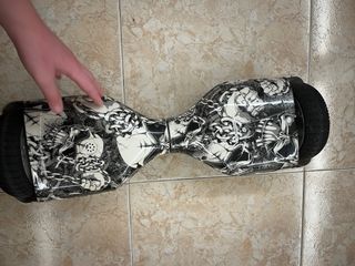 Hoverboard con un llamativo diseño de calaveras y cadenas en blanco y negro. Ideal para desplazarse de forma divertida. - Diseño gráfico de calaveras. - Acabado brillante. - Sin cargador Añadido el asiento para ir sentado
