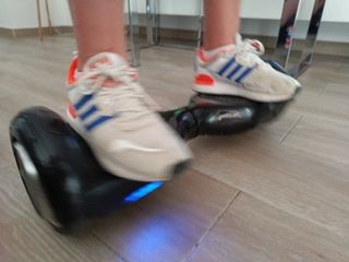 Hoverboard de color negro, funciona perfectamente . Cuenta con plataformas antideslizantes para mayor seguridad e Indicador LED de estado. Tiene algunas marcas de uso (se ve en las fotos) pero con la funda no se nota nada, por lo demás, perfecto. Incluye: - Caja original - Cargador - Funda de silicona con colores llamativos - Bolsa para transportarlo. #patinete #electrico #niños #reyes magos