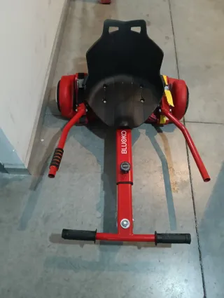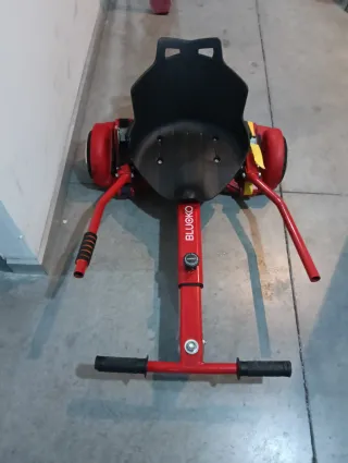 Hoverboard con asiento BLUOKO en color rojo. Ideal para paseos divertidos. Enciende, pero no debe de estar configurado y no sé. Se puede ver sin compromiso - Asiento negro. - Ruedas rojas. - Manillar negro.