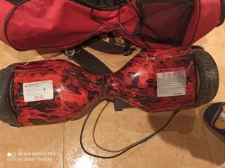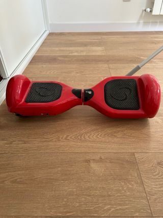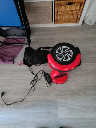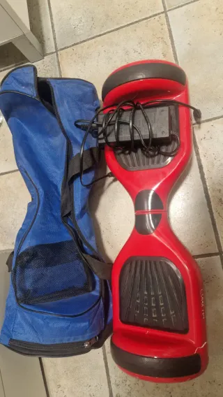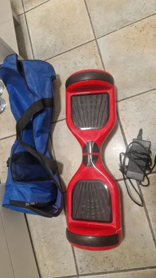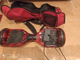 Hoverboard de color rojo usado. Tiene algun que otro desperfecto. Pero funciona perfectamente. No se le ha dado mucho uso. Bateria perfectamente. Viene incluido cargador, y bolsa para guardar el hoverboard.