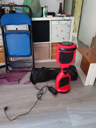Pongo en venta este hoverboard rojo metalizado que está prácticamente nuevo. Funciona perfecto, solo tiene los típicos rallones del uso en la parte de adelante que no afectan para nada. La batería tiene un pequeño detalle, pero sigue siendo ideal para pasar el rato o para quien sepa ajustarla un poco. ¡Está muy chulo y es superdivertido! PRECIO NEGOCIABLE
