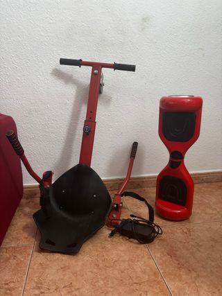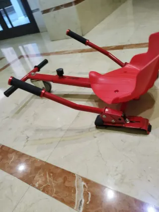 Accesorio para convertir tu hoverboard en un kart. - Asiento negro. - Estructura de metal roja. - Manillares negros. - Altura pies ajustable. - En perfectas condiciones.