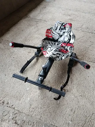 Asiento diseñado para adaptarse a hoverboards, permitiendo una nueva forma de uso. - Estructura metálica negra. - Asiento con diseño gráfico llamativo en blanco, negro y rojo. - Empuñaduras rojas y negras.