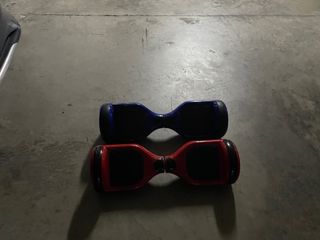 Se venden dos hoverboards, uno azul y otro rojo. Ideales para desplazarse de forma divertida. - Hoverboard de color azul. - Hoverboard de color rojo.