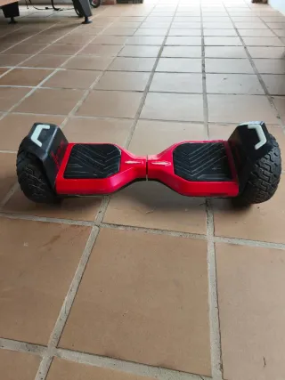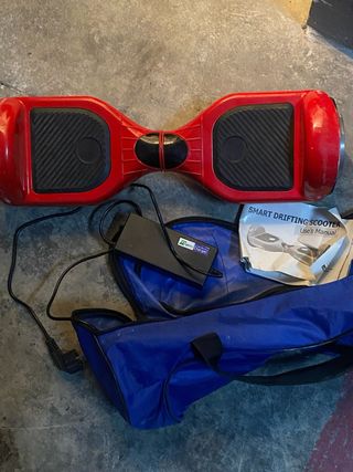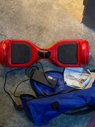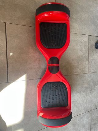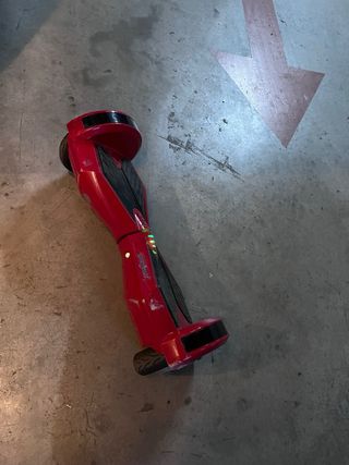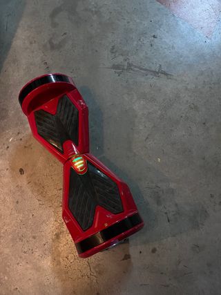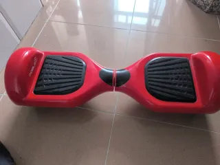 Patinete hoverboard de color rojo. - Diseño moderno y llamativo. - Plataformas antideslizantes. - Arañazos del uso. - Precio negociable porque en mudanza se perdió el cargador,pero vale barato en Amazon o otras tiendas online,el patinete funciona sin problemas,de ahí que su precio sea negociable.