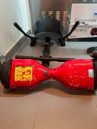 Hoverboard Smartgiro con asiento tipo silla. Accesorio para convertir el hoverboard en un kart. - Hoverboard de color rojo - Silla de diseño con estampado de grafitis. - Silla ajustable para adaptarla al crecimiento del niño. - Caja original - Bateria en perfecto estado.