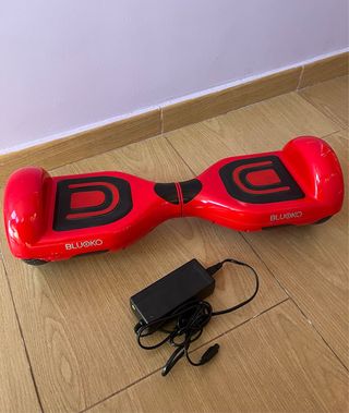 Hoverboard de color rojo de la marca BLUOKO. Incluye su cargador. - Pequeños rasguños en los laterales.