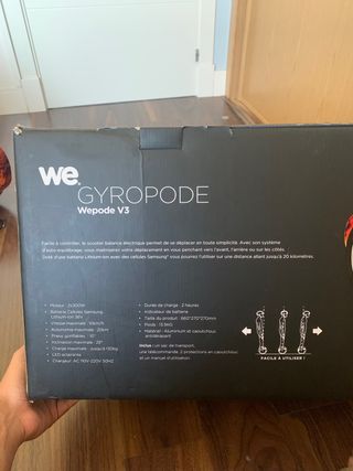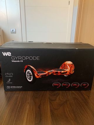 Vendo hoverboard WE GYROPODE Wepode V3 10’’ en perfecto estado. Cuenta con embalaje, funda y cargador originales. Características del producto (Segunda imagen): - 2 motores de 300W cada uno. (Uno en cada rueda) - Batería Samsung Lithium-Ion 36V - Autonomía de 20km - Ruedas de 10’’ - Peso máximo: 130kg - Cargador: AC 110V-220V 50Hz - Duración de la carga de 2h - Cuenta con indicador de batería - Dimensiones del producto: 660*270*270 - Peso del producto: 13,5Kg - Material: Aluminio y goma antideslizante. Precio NEGOCIABLE.
