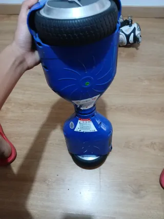 Hoverboard de color azul con plataformas antideslizantes. - Le hace falta el cargador. - Diseño moderno y llamativo. - Acabado brillante.
