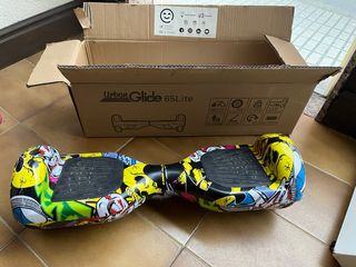 Hoverboard Urban Glide 65Lite con un diseño llamativo y colorido. - Velocidad máxima de 15 km/h. - Ruedas de 6.5 pulgadas. - Peso máximo soportado de 100 kg. - Luces LED. - Autonomía de 4 horas. - Alcance de 15-20 km.