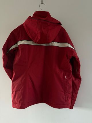 Buzo de nieve infantil de color rojo, ideal para mantener a los más pequeños abrigados y protegidos en la montaña. - Diseño con detalles en blanco. - Cinturón ajustable. - Cierre de cremallera frontal.