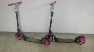 2 Patinetes Oxelo de Decathlon con ruedas grandes. - Color negro y rosa. - Manillar ajustable en altura. - Plegable para facilitar su transporte. 20€ cada uno