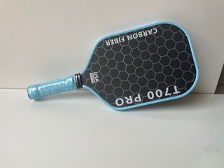 Pala de pickleball con diseño moderno y acabado en fibra de carbono. - Modelo T700 Pro. - Color azul. - Superficie con patrón hexagonal. - Empuñadura cómoda.
