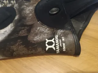 Traje de pesca submarina Picasso de 5mm, talla M, con neopreno Yamamoto.tiene dos arreglos en la capucha por los demás en perfectas condiciones,siempre endulzado y pantalón con pisete - Diseño camuflaje imitando rocas. - Chaqueta con capucha integrada. - Pantalón de cintura alta.