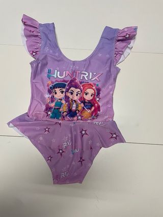 Bañador infantil con estampado de personajes huntrix. - Diseño con volantes en las mangas. - Estampado multicolor con estrellas y detalles neón. A estrenar .