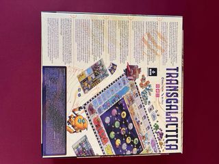 Juego de mesa Transgalactica. Enfundado y reglas corregidas impresas - Ilustraciones de naves espaciales y galaxias. - Diseño de Daniele Tascini y Edu Valls. - Publicado por Devir.