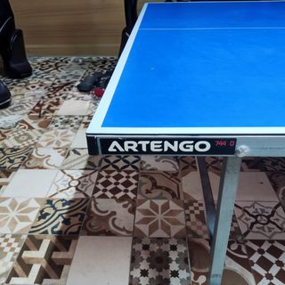 Mesa de ping pong Artengo en color azul, ideal para jugar en casa o en exteriores. - Superficie de juego azul. - Estructura metálica plegable. - Red incluida.