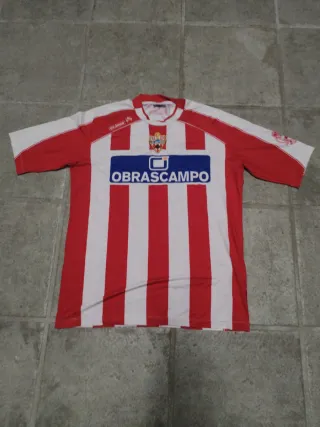 Camiseta de la UD Almería de la marca Cejudo. Original Me la dieron en un sorteo - Talla XL. - Diseño a rayas rojas y blancas. - Logo de Obrascampo en el frontal.