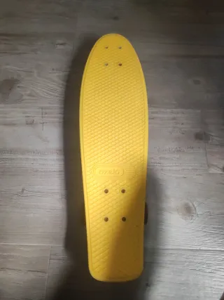 Penny board de color amarillo, marca Oxelo. Ideal para desplazamientos cortos y diversión. - Diseño compacto y ligero. - Superficie antideslizante.