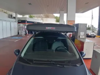 Tienda de techo para coche, ideal para transportar equipaje adicional en tus viajes. - Diseño robusto y aerodinámico. - Color negro. - Marca ATHAN SPORT.