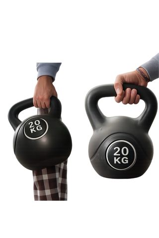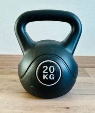 Kettlebell de 20 kg, también conocida como pesa rusa. Ideal para entrenamientos de fuerza y acondicionamiento. - Peso: 20 kg. - Color: Negro.