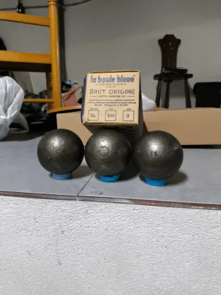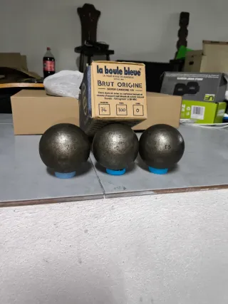 Set de tres bolas de petanca de la marca La Boule Bleue. - Modelo: Brut Origine Super Carbone 125. - Peso: 700g. - Diámetro: 74mm. - Dureza: 39 hrc