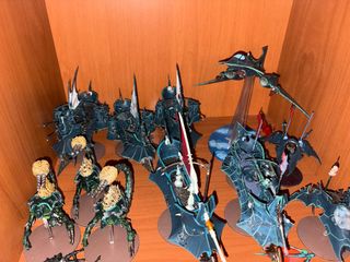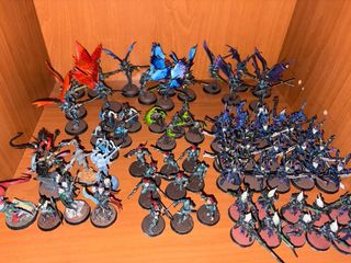 Ejército Drukhari para Warhammer 40,000. bien completo y todo original. todo esta imantado y bien cuidado. casi todo bien pintado no se vende por separado. se puede enviar. 3 ravager 2 raiders 9 guadañas 5 hellions 20 brujas 1 lelith 15 íncubos 1 cronos 20 guerreros kabalitas 6 ponzoña 1 súcubo 1 avión 10 scourges 3 arcontes 10 atormentados 10 mandrágoras 1 drazhar De regalo 5 scourges resina 3 talos y 2 cronos resina 5 íncubos (tienen cuerpo de guerrero eldar con armas y cabezas de íncubos) (así que son 100% GW 🤣) 2 personajes que se pueden usar de sucubos La corte del arconte