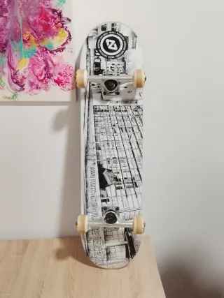 Tabla de skate con bastante uso, pero la madera es lo que más desgastado está, lo demás está bien. - Diseño llamativo con calavera y pirámide. - Ruedas y ejes incluidos.