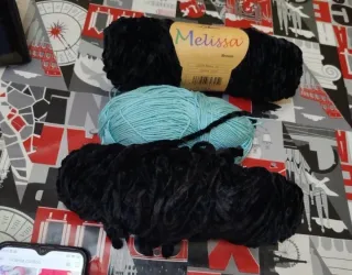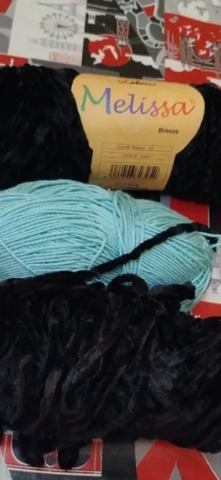 Lote de ovillos de lana para tus proyectos de tejido. - Ovillo de lana negro marca Melissa Breeze. -1 Ovillo de lana azul. - 2 Ovillo de lana negro.x3€ todos