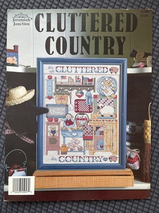 Patrón de punto de cruz Cluttered Country de Jeremiah Junction. - Incluye el esquema original. - Diseño temático campestre y hogareño.