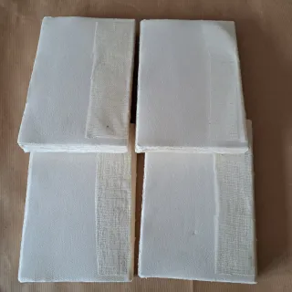 Cuatro conjuntos de hojas de papel artesanal, cosidas i encoladas, ideales para la creación de libros o proyectos artísticos. - Papel de alta calidad con textura única. Cosido a mano. Solo falta poner tapas. - Medidas 17x11. 67 hojas en cada unidad. - - Precio por todos