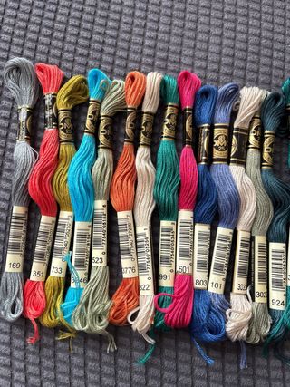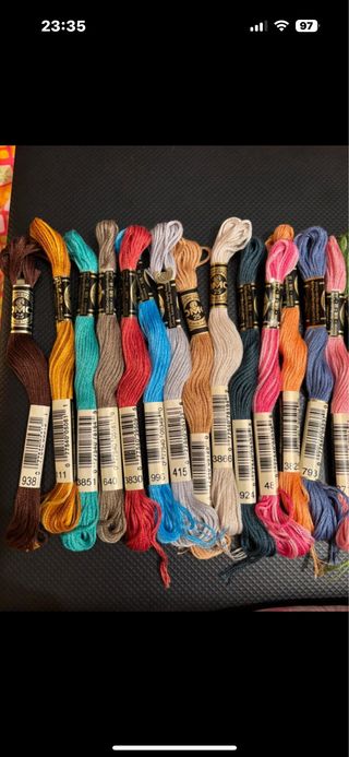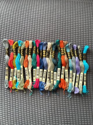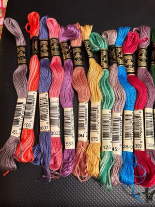 Lote de 22 madejas de hilo Mouline DMC en varios colores. - Hilo de bordar y punto de cruz de alta calidad. - Ideal para proyectos de costura y manualidades. - Colores variados para mayor versatilidad.
