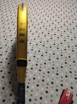 Pala de pádel con acabado en color dorado y detalles en negro. Presenta la inscripción 12K CARBON y HARD TOUCH. - Material: Carbono 12K. - Diseño: Dorado y negro.