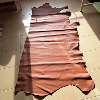 Retal de piel en color marrón. - Piel de animal. - Color marrón. Medidas 1,90x93, grueso 2 mm.