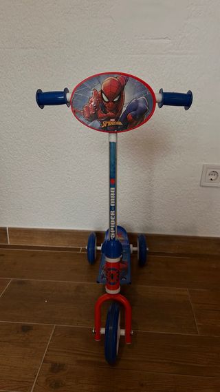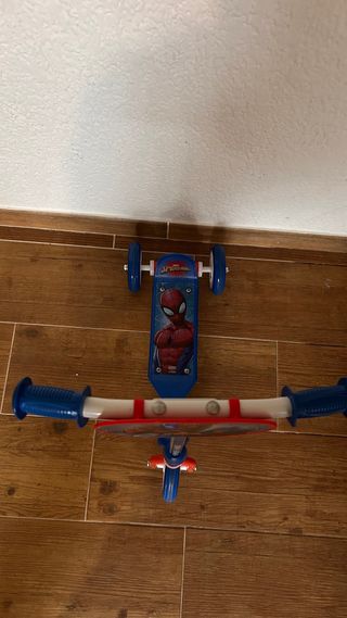 Patinete infantil con diseño de Spiderman. Ideal para los más pequeños. - Usado como nuevo, esta en excelente estado - Tres ruedas para mayor estabilidad. - Manillar con agarres azules. - Base con diseño de Spiderman.