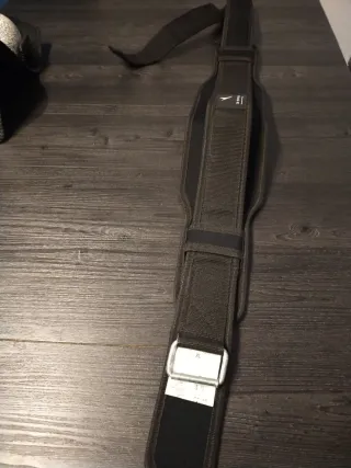 Cinturón lumbar de la marca Domyos, ideal para soporte. - Color negro. - Cierre con hebilla metálica. - Talla XL.