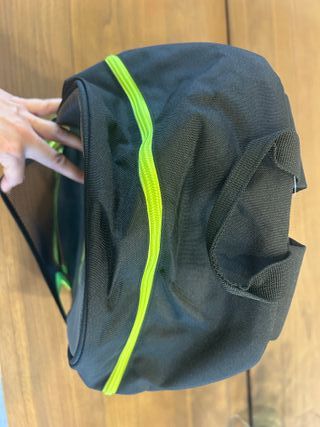 Mochila de pádel de la marca Adidas en color negro con detalles en lima. Tiene un compartimento principal espacioso con el cierre de cremallera, un bolsillo lateral y uno delante para la pala. Su diseño es moderno, elegante y funcional. No se ha usado nunca, conserva el embalaje original y está sin abrir y con la etiqueta. Medidas: - 33 cm ancho - 46 cm altura - 17 cm fondo