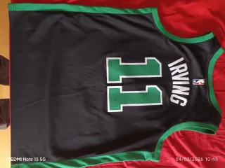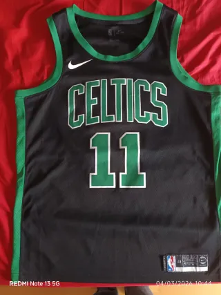 Camiseta de baloncesto de los Boston Celtics, talla 48. - Color negro con detalles verdes. - Número 11 en la parte frontal. - Logo de Nike y etiqueta NBA. - Tecnología Dri-FIT.