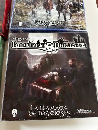 Precio no negociable. Pack completo de aventuras para el juego de rol La Marca del Este. Incluye 4 cajas míticas. Solo se vende a compradores con 20 transacciones y 5 estrellas. La caja del Manual Avanzado está sellada sin abrir. Las demás en buen estado con todos los accesorios (lápiz y dados) con los que venían. - Aventuras en La Marca del Este: Juego de Rol - Aventuras en La Marca del Este: Escenario de Campaña - Aventuras en La Marca del Este: Manual Avanzado - Aventuras en La Marca del Este: La Llamada de los Dioses