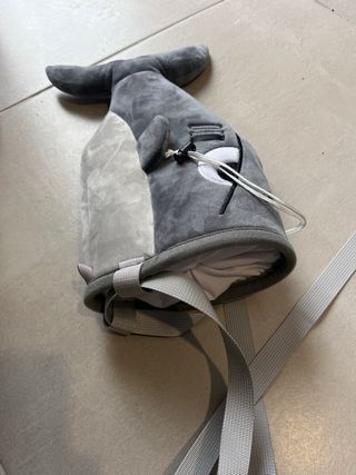 Magnesiera con diseño de tiburón, ideal para escalada. Cuenta con un divertido diseño que simula un tiburón. - Color gris y blanco. - Material de felpa suave. - Correa ajustable para colgar. - Logo BG visible.